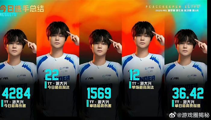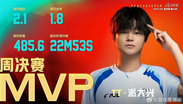 恭喜TT-派大兴以38个总淘汰获得2025PEL夏季赛第七周淘汰王!