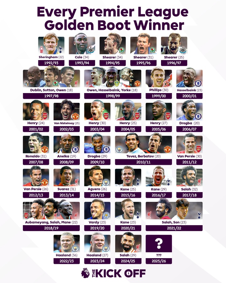华体会权威下载-英超官推晒历年英超金靴得主:萨拉赫本赛季能否卫冕金靴?