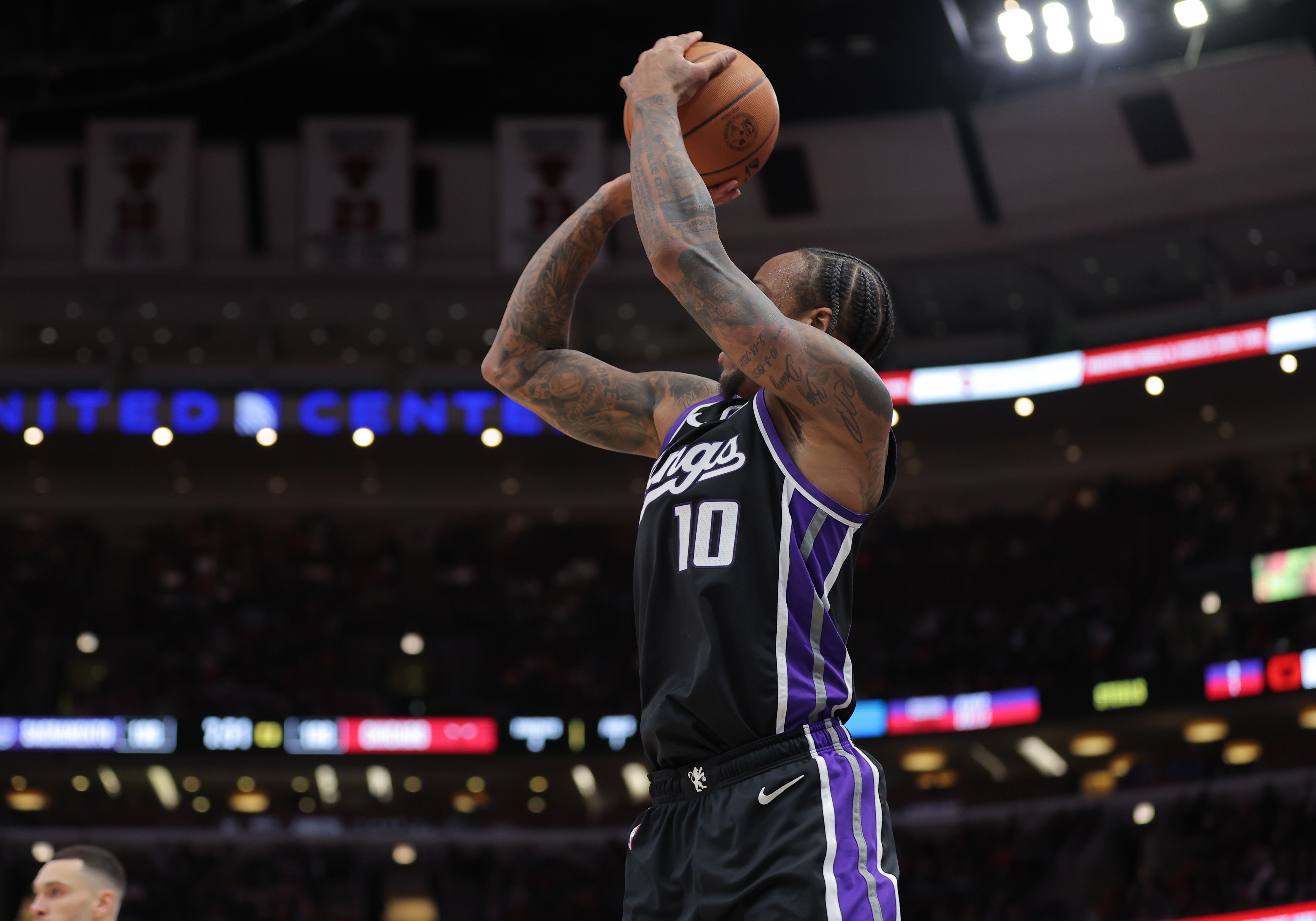 美媒则晒出了上赛季中投数量排名前十,德罗赞断层领跑,单赛季命中640记中投,命中率45.8%,排名第二的是亚历山大的348记,命中率50.0%,布克第三(325、51.7%),之后是杜兰特、字母哥、穆雷、布伦森、詹姆斯、杰伦-格林和班凯罗。